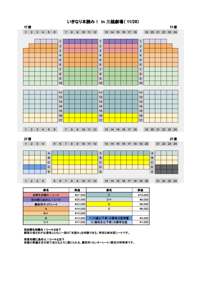 ・本読みに一部参加できる「お前も本読み!」シート:27,500円